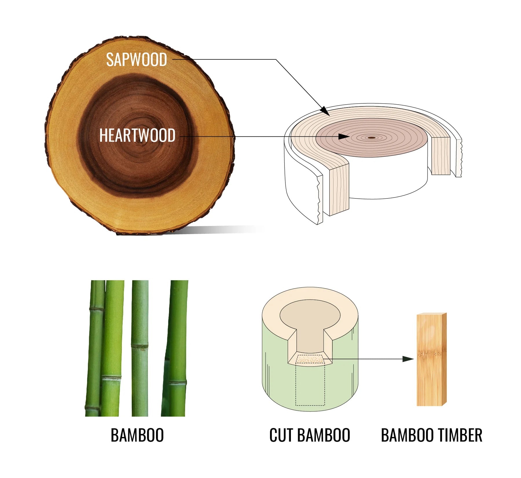 - Lighter in colour and with a higher moisture content than heartwood, it’s less dense, is softer and more susceptible to decay.