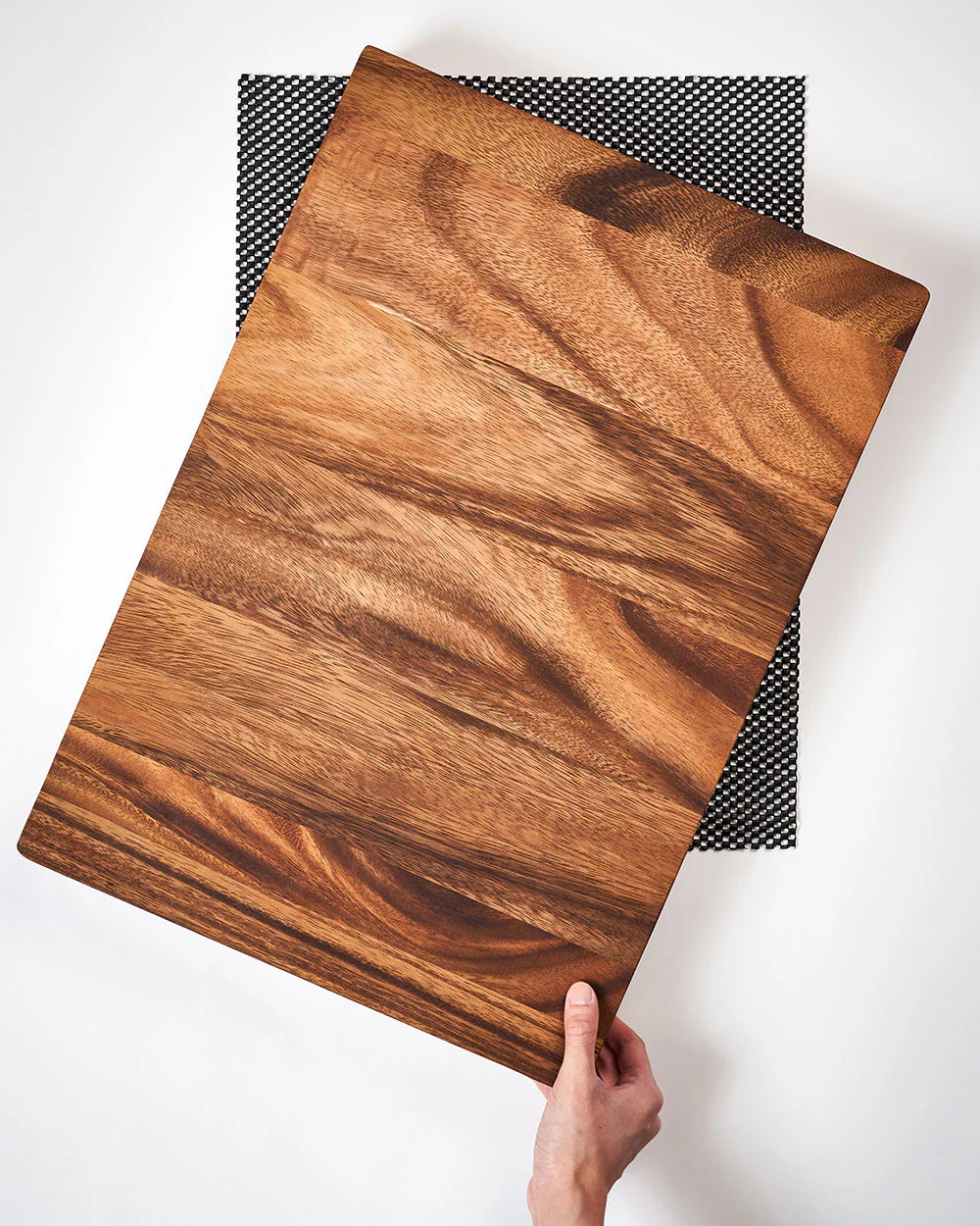 - The surface has a striking checkerboard pattern and is particularly knife-friendly, with a resistance to deep cuts.